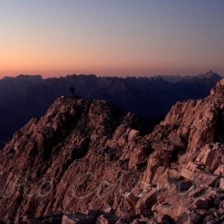 Percorrendo al primo albeggiare la cresta sommitale della Croda di Ligonto. Ligonto è un drago di cui narrano le leggende del Comelico