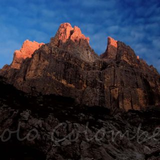 Alba sulla Croda di Ligonto. La luce del Sole illumina le pareti di questa grande montagna