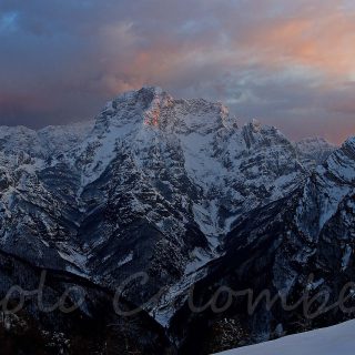 Tramonto sul Col Nudo il versante settentrionale del Col Nudo in veste invernale