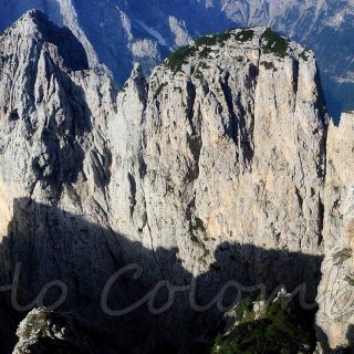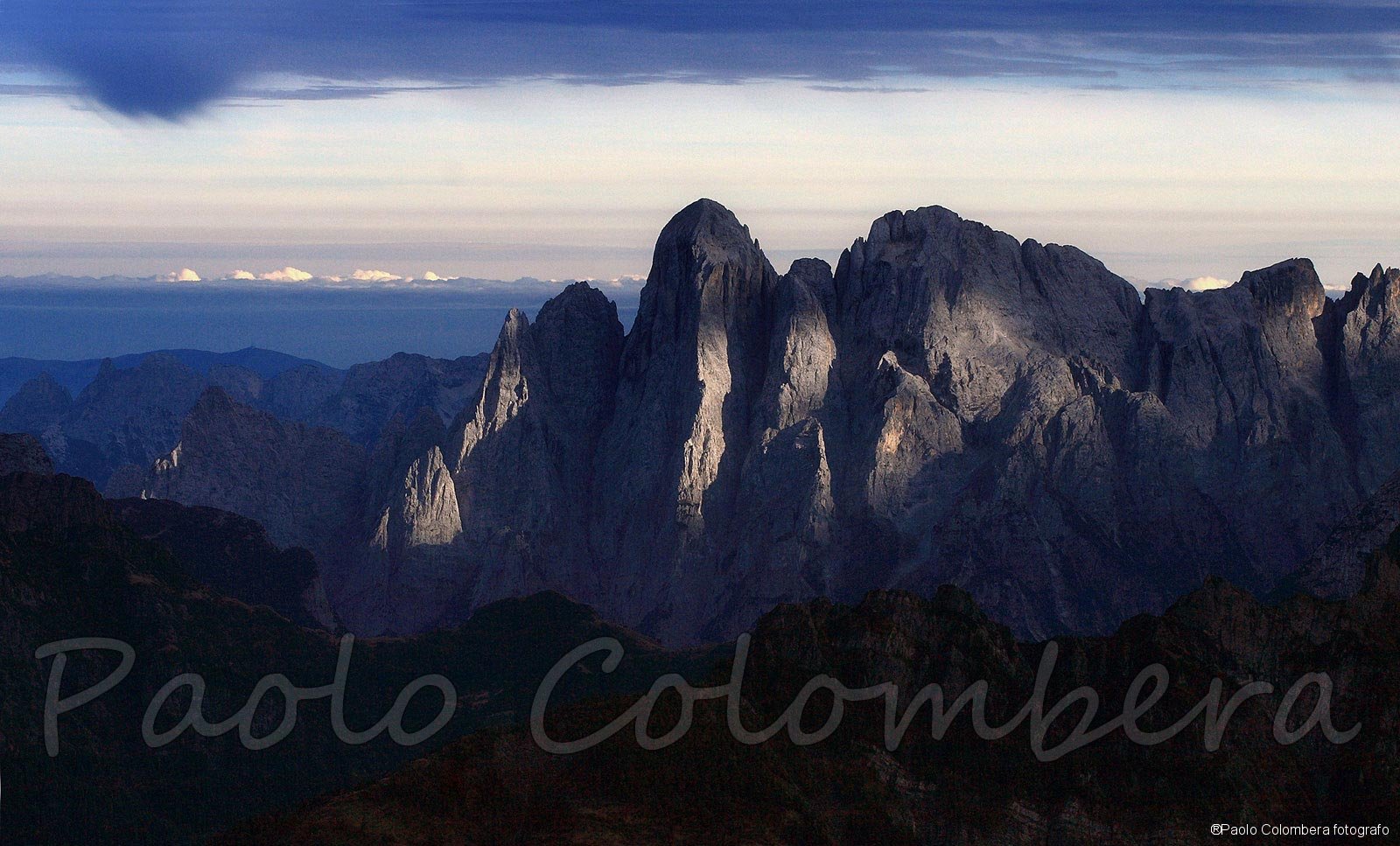 Lo spigolo dell'Agner che risalta, tra luci ed ombre nella luce serale