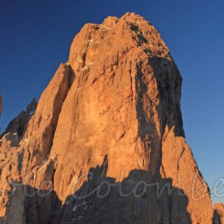 Le Pale di San Lucano sono tra le pareti più alte ed impressionanti delle Dolomiti. Le prime luci del Sole illuminano la Terza Pala e lo Spiz di Lagunaz